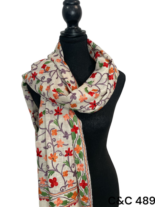 Scarf/Wrap Hand Embroidered Aari Jaal Work